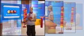 KI.KA - Kummerkasten Eine klassiche Anwendung des Virtuelle Studios nutzt das Format Kummerkasten des KI.KA. Ein paar reale Kullissenelemente, die schnell auf- und wieder ab gebaut werden können mit einem virtuellen Hintergrund, der an manchen Stellen einen großen Videomonitor oder andere Anzeigemöglichkeiten bietet. |